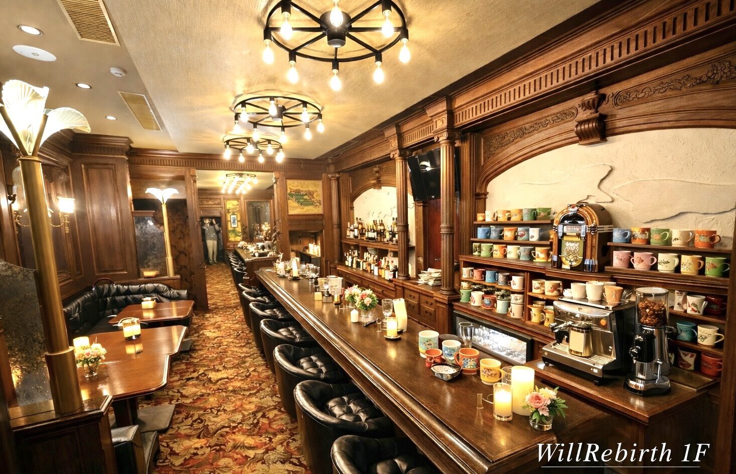 店内では海外のマグカップをお選びいただき、気分に合わせた一杯をお楽しみいただけます。古着+喫茶といった空間で、美味しいコーヒーやお酒をご用意しております。