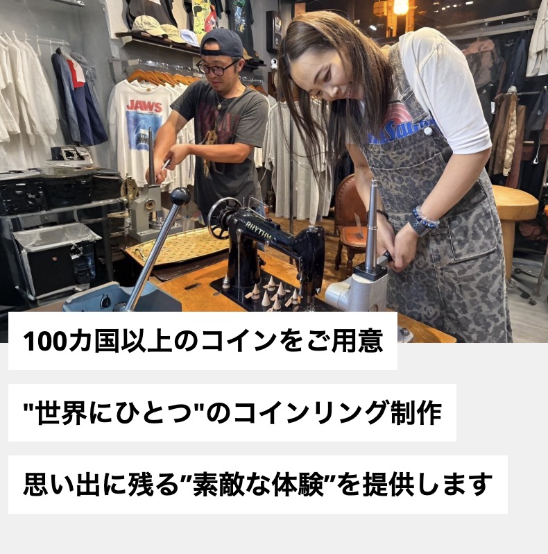 100カ国以上のコインの中からお好きなものを選び、世界にひとつだけのオリジナルアクセサリーをご自身で制作していただけます。お気軽にご参加ください。