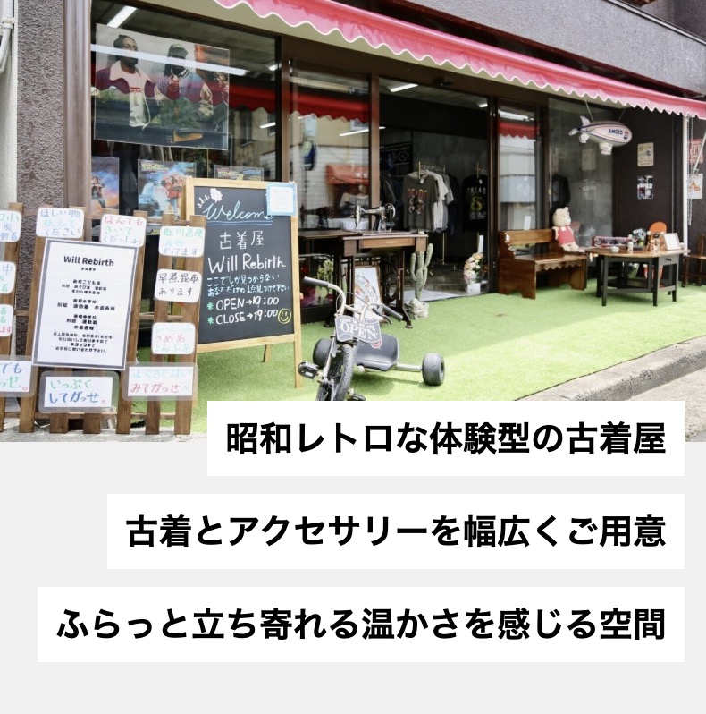 古着やアクセサリー、ワークショップ、カフェを通して、モノや体験だけでなく、人と人が自然に繋がる時間をご提供したいと考えています。
