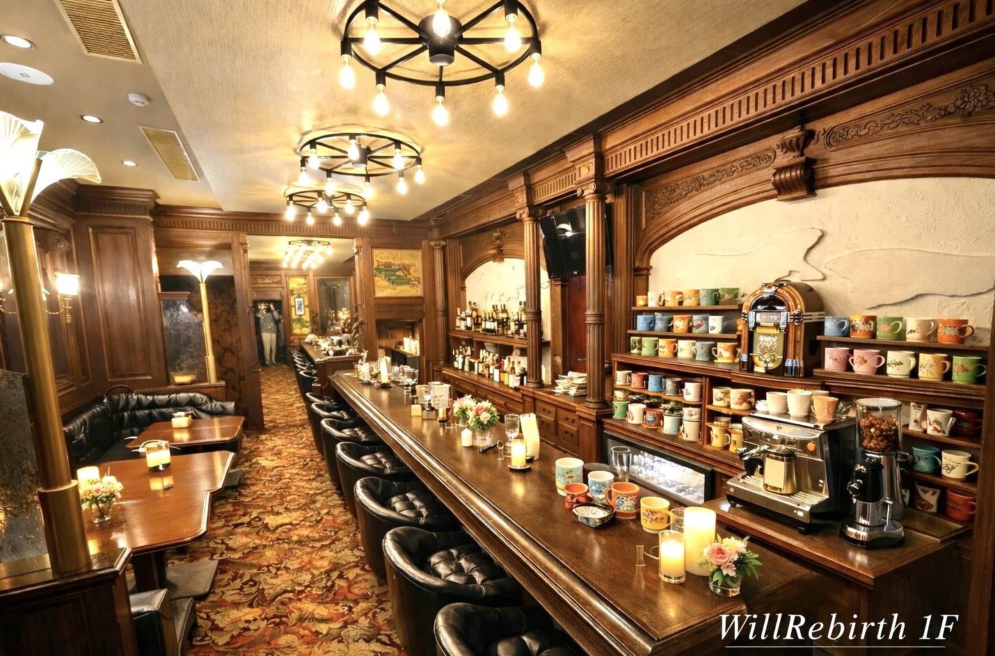 1階の喫茶と連携し、コーヒーやアルコール・食事までご用意いたします。